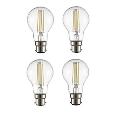 TEKLED® A60 Filament Vintage LED Bulbs B22 Bayonet Cap Energy Saving 6.5W Light Bulb 60W Equivalent NONDIMMABLE Clear 4000K 806LM 4 Pack Cool White