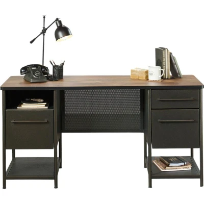The sturdy metal frame and vintage oak accent of the Teknik Boulevard Cafe Desk will give your flat a timeless look.With 3 drawers, a cubbyhole and 2 lower shelves, you'll have plenty of space for storage. And the lower filing drawers are ideal for your letter-sized documents.