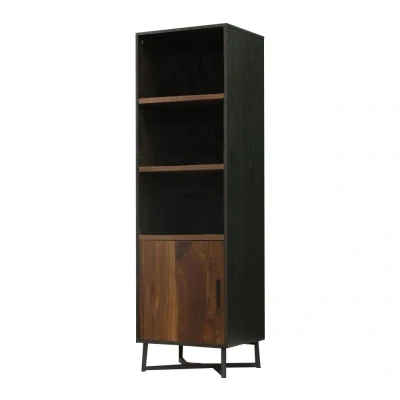 Add a touch of modern design in your home with the Teknik Canyon Lane 3 Shelf Bookcase. Built in Brew Oak with Grand Walnut accents and resting on a black metal base, it will look great in any room. There are three adjustable shelves and a cabinet with a door at the bottom of the bookcase. A sturdy metal base with four legs supports it above the ground for easier reach to the cabinet and easy access to the floor below it. The cabinet door can be hung on either side to suit the needs of the room you place it in.