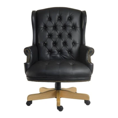 Make important decisions in comfort and style with the Teknik Chairman Noir Bonded-leather Tilting Executive Chair.The button-tufted upholstery and nail-head trim will bring a traditional look to your office.Find the right position with the adjustable height and tilt. This swivel chair also has padded wing armrests for added comfort.