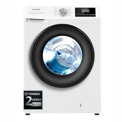Fast 49/30 Minute Power Wash Cycles – This Teknix 7kg freestanding washing machine offers rapid cleaning options to handle everyday laundry in under an hour. Ultra-Quick 15 Minute Wash – Refresh lightly soiled clothes in just 15 minutes, ideal for workwear, sports kits, or last-minute outfits. Durable Inverter Motor Technology – Enjoy quiet, energy-efficient performance with a long-lasting motor built for reliability and reduced wear. A Energy Efficiency Rating – Lower your electricity consumption and utility costs with an eco-friendly washing machine that doesn’t compromise cleaning power. 7kg Large Drum Capacity – Perfect for family households, couples, or shared homes, handling mixed loads, bedding, and towels in fewer washes. Slim Depth Compact Design – A space-saving freestanding washing machine that fits seamlessly into narrow kitchens, small utility rooms, or apartments. Drum Clean - This clever function automatically cleans the drum of any bacteria using a unique hot water cycle. Two Years Parts and Labour Cover - As with all 2 series Teknix products, this washing machine comes with 2 years parts and labour cover. Easy to Install & User-Friendly Controls – Designed for hassle-free setup, intuitive operation, and everyday convenience. Matching Drye - The Teknix TKHP9HW heat pump dryer is also available.