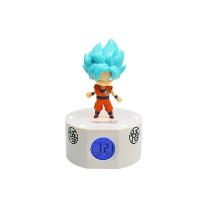 Start the day in Super saiyan blue mode with the GOKU luminous alarm clock. The backlit screen features a digital display of the time, date and room temperature, and the alarm is programmable. It has 2 fixed or progressive lighting modes. This wireless luminous alarm clock works with 3 AAA batteries (not included) or a USB/micro USB power cable (included). The GOKU luminous alarm clock is an official TOEI animation product., Platforms: Not Machine Specific