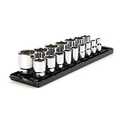 Includes 16 pc. 1/2 in. drive 6 point sockets: 3/8, 7/16, 1/2, 9/16, 5/8, 11/16, 3/4, 13/16, 7/8, 15/16, 1, 1 1/16, 1 1/8, 1 3/16, 1 1/4, 1 5/16 in.; Socket rails and tray 6 point socket opening provides an ideal, exact fit for hex shaped fastener heads Socket geometry is designed to apply force to flat sides of fasteners and not the corners, preventing round off Standard length socket is relatively versatile and suitable for a wide range of applications Extra large die stamped size markings are easy to read and can't wear off.Polished, chrome plated finish easily wipes clean and is highly resistant to corrosion.Four detent grooves provide a secure connection with the drive tool.Beveled inner rim of the socket opening helps guide it smoothly onto fasteners.Twist to Lock Socket Rail organizes and securely holds socket in place both for in your toolbox and on the go., Weight: 4.82 Pounds, Manufacturer: TEKTON