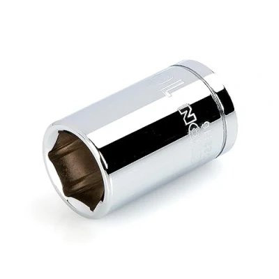 6-point socket opening provides an ideal, exact fit for hex-shaped fastener heads Socket geometry is designed to apply force to flat sides of fasteners and not the corners, preventing round-off Standard-length socket is relatively versatile and suitable for a wide range of applications Extra-large die-stamped size markings are easy to read and can’t wear off Polished, chrome-plated finish easily wipes clean and is highly resistant to corrosion.Four detent grooves provide a secure connection with the drive tool.Beveled inner rim of the socket opening helps guide it smoothly onto fasteners.Overall Socket Length: 1.5 in., Socket End Diameter: 0.87 in., Drive End Diameter: 0.87 in., Socket Well Depth: 0.52 in., Weight: 0.14 Pounds, Manufacturer: TEKTON