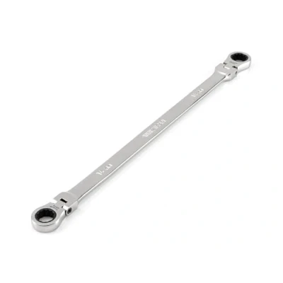 180-Degree Flex Head – The flex head sweeps smoothly through 180-degrees without any set positions Long Length – The long beam offers extended reach into narrow spots and increased leverage for turning tough fasteners 12-Point Box End – The 72-tooth ratcheting box end wrench requires a working swing ark of only 5-degrees and fits multiple types of fasteners, including 6-point, 12-point, and square Clear, Stamped Markings – A size marking is permanently stamped onto both sides of each ratcheting wrench for quick identification Smooth, Satin Chrome Finish – Each wrench is abrasive-blasted to create a finely textured finish and then plated with a trivalent chrome process