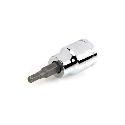 S2 steel bit is press-fit into the socket for a straight, permanent connection that can't loosen over time 6-sided hexagonal tip is machined to precise tolerances for an exact fit with hex fasteners Large, clear die-stamped size marking is easy to read and can’t wear off Four detent grooves provide a secure connection with the drive tool and a drilled through-hole allows locking on with retaining pin Polished, chrome-plated finish easily wipes clean and is highly resistant to corrosion.Beveled inner rim of the socket opening helps guide it smoothly onto fasteners