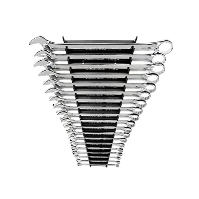 Includes 19-pc. inch combination wrenches: 1/4, 9/32, 5/16, 11/32, 3/8, 7/16, 1/2, 9/16, 5/8, 11/16, 3/4, 13/16, 7/8, 15/16, 1, 1-1/16, 1-1/8, 1-3/16, 1-1/4 in.; Wrench organizer rack No Skipped Sizes: this 19-piece set contains a full range of wrenches from 1/4 inch to 1-1/4 inch Angled Open End: to reduce the working swing arc in tight spaces, the wrenches' open end is angled 15 degrees so the wrench can be flipped over with each rotation to engage the fastener twice as often Offset Box End: the wrenches' box end is offset 15 degrees, creating clearance for your fingers and making it easier to reach around obstructions Corrosion Resistant Finish: polished chrome finish easily wipes clean and protects wrenches from corrosion 12-Point Box End: a 12-point box end doubles the access angles of a 6-point box end, Weight: 12.52 Pounds, Manufacturer: TEKTON