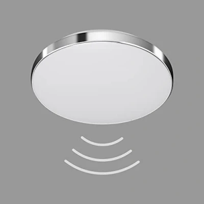 Simple, round LED sensor light, made of plastic metal, in white/chrome. Thanks to the protection class IP44, it is also suitable for wet rooms such as bathrooms and cellars. Product dimensions: 290 x 63 mm (D x H) The integrated intelligent 360° motion sensor with a range of 8 m, provides the light as needed - the equally integrated daylight sensor brightens up the room (ideal for cellars, hallways, entrance areas and living rooms) Different lighting time intervals are available as setting options: 5 seconds, 30 seconds, 1 minute, 3 minutes, 10 minutes, 20 minutes or 30 minutes - after moving again in the radius, the set time interval starts again. A continuous light function is also available The motion sensor of the light is individually adjustable and is activated at a light intensity of