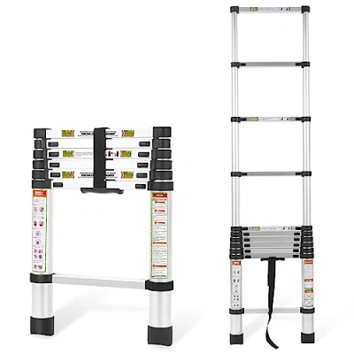 ✔【Premium Aluminum Alloy】:RIKADE telescopic ladder using 6063 high strength and high hardness aluminum alloy tube, better quality and safer. Package 18.1”×2.95”×26.7”.The net weight of the aluminum ladder is10.4lbs. ✔【Great Stability】--Fully safe load bearing 330 pounds, suitable for most people, independent button adjustment of each section can effectively prevent pinching hands when contracted. ✔【Independent locking mechanism】--For safety, we purposely designed each section with independent locking mechanism to fix and adjust the extension ladder, effectively preventing accidental contraction and more personalized needs to adjust the height of telescoping ladder. ✔【Multi-scene Use】--This telescopic ladder is not only suitable for daily household cleaning, organizing the use of high objects, can also be used for workers in the project, when let is also suitable for outdoor camping car roof tent and other uses. ✔【Portable and Compact】--The lighter weight telescoping ladder and the handrail designed at the bottom make the ladder easy to carry to common scenarios, while the extension ladder can be easily stored under beds, in corners, in storage cabinets and in cars., Weight: 10.4 Pounds, Manufacturer: RIKADE