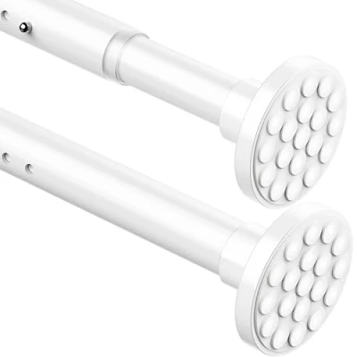 Extra long and extra thick: The extendable curtain rail is designed to extend up to 355 cm/139 inches and the thickness of 0.8 mm allows you to use it to safely hang heavy fabrics. (Please make sure the opening of your curtains is larger than 38 mm before purchasing. If it is smaller than 38 mm, it may not be suitable). Non-slip and rust-proof: The Aiitomg shower curtain pole is designed with a delicate, non-slip head of diameter 7.8 cm with a soft design and is covered with high-quality paint to make it rust-proof. Strong spring & rebound prevention: The Aiitomg extra-long curtain pole has a strong spring, and the metal button can prevent the spring from rebounding, thus ensuring that it does not fall down all the time. Package contents: 1x 110–165 cm / 43.3-64.9 inch telescopic rod & 2x 100 cm/39.3 inch extension rod & 1x 56 cm/22 inch extension rod. You can use it in bedrooms, living rooms, balconies, bathrooms or cupboards to hang various curtains or clothes; can also be used for room dividers, etc.