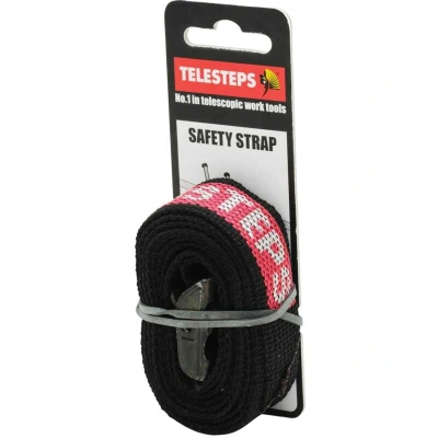 General description This product is a safety strap designed to secure leaning ladders to stable objects, enhancing safety during use. It helps prevent slipping and provides additional stability when working at height. Technical specifications Material: Durable, high-strength strap material Compatibility: Suitable for various ladder sizes and types Dimensions: Adjustable length to fit different ladder and anchoring points Compatibility and accessories Compatible with most leaning ladders Can be used with pegs or other anchoring devices for added security Installation Wrap the strap around the ladder and secure it to a stable object such as a beam or post Adjust the length for a snug fit Ensure the strap is tightly secured before use Usage Use the strap whenever working on a leaning ladder to prevent slipping Secure the ladder to a steady object for increased safety Other information The Telesteps Safety Strap is a small and easy way to add safety when working on a leaning ladder.
