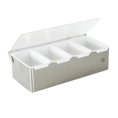 TELLIER Louis Spice and Condiment Box with 4 Compartments Stainless Steel Practical Display Dispenser for Spices, Ingredients Toppings at Hand Professional Quality