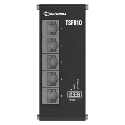 Teltonika TSF010 Ethernet switch, flat & compact, 5 x 10/100 Mbps Ports, integrated DIN rail bracket, 3 pin