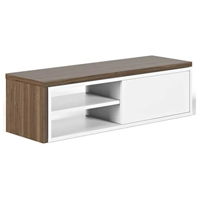 TV table in walnut veneer and white matte finish, with 1 shelve and 1 sliding door. Recommended Maximum Weight on the extension when fully opened is 20 Kgs spread uniformly over it. Made in Portugal Self-assembly required Dimensions: 110cm x 35cm x 32cm