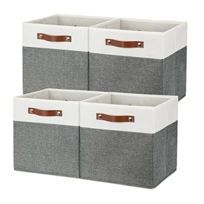 PREMIUM MATERIAL: Our 12 inch storage cubes is made of sturdy fabric & soft lining, thicken cardboard lined into let the cube storage boxes for shelves look perfect. Sturdy and high-quality material makes these storage cubes can hold heavy stuff and last a longer lifespan FABRIC BINS SIZE: Dimensions (each): 12 inches x 12 inches x 12 inches, set of 4, these cube organizers allow for more storage. The fabric cube storage bins are designed to hold everything such as socks, blankets, books, games, and so on SOFT STURDY HANDLES: The sturdy leather handles in front of closet storage bins make transport a breeze. Convenient and sturdy attached handles make these storage boxes easy to pull in and out FOLDABLE STORAGE CUBES: These cube storage baskets come with a foldable feature that convenient to save space and take along. You could simply fold it up when not in use, which will take full advantage of your closet or shelf, and also save space MULTI-PURPOSE STORAGE CUBES: Ideal for a variety of basic household storage needs, helping to keep your living spaces neat. The storage cubes can be used as 12x12 baskets for cube storage, book/magazine organizer, and many other uses