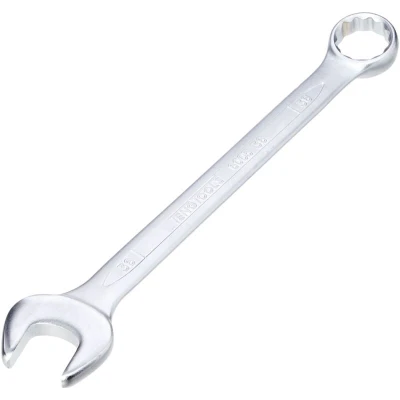 General description This is a metric combination wrench designed for versatile use in various mechanical and repair tasks. It features a dual-head design that combines a fixed open-end and a ring (star) end, allowing for efficient tightening and loosening of nuts and bolts. The wrench has a 15-degree angle for easier access in tight spaces, making it suitable for professional and DIY applications. Technical specifications Material: Chrome vanadium steel Finish: Matte Angle: 15 degrees Size: 36 mm Dimensions: D1 - 53.5 mm, D2 - 74 mm, Length - 410 mm Compatibility and accessories Compatible with standard metric nuts and bolts No additional accessories required Installation No installation required Simply select the appropriate size and end type for your task Usage Use the open-end for quick grip and turning Use the ring end for more torque and secure grip Ideal for automotive, machinery, and home repair tasks
