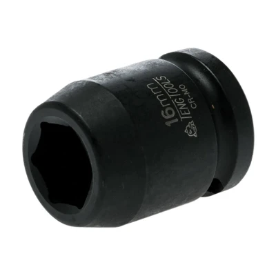General description This is a high-quality Teng Impact Socket designed for professional use. Made from special chrome-molybdenum steel, it offers durability and strength for demanding tasks. The socket features a hexagonal drive and a safety pin hole to securely attach to the tool's square shank. Its black finish complies with DIN standards. Technical specifications Size: 16mm Length: 38mm Material: Chrome-molybdenum steel Drive type: Hexagonal Diameter D1: 25.0 mm Diameter D2: 30.0 mm Compatibility and accessories Compatible with tools that have a square shank matching the socket's drive size Includes a safety pin hole for secure attachment Installation Insert the socket onto the square shank of your compatible tool Secure it using the safety pin if necessary Usage Use with impact wrenches or ratchets for tightening or loosening hexagonal fasteners Ensure the socket is properly attached before operation for safety and efficiency Other information