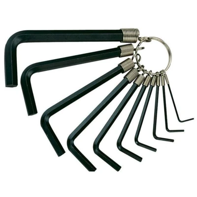 General description Teng Tools 10 piece set of imperial hexagon keys is crafted from chrome vanadium steel, ensuring enhanced strength and durability. The keys are finished in black and come on a convenient holding ring for easy organization and access. This set is ideal for various DIY and home improvement tasks, featuring sizes ranging from 1/16 inch to 3/8 inch. Technical specifications Material: Chrome vanadium steel Finish: Black Type: L-shaped hex keys Number of pieces: 10 Sizes included: 1/16in, 5/64in, 3/32in, 1/8in, 5/32in, 3/16in, 7/32in, 1/4in, 5/16in, 3/8in Compatibility and accessories Compatible with standard imperial hexagon fasteners Supplied with a holding ring for organization Installation No installation required. Simply select the appropriate size hex key from the set for your fastener. Usage Use the hex keys to tighten or loosen hexagon socket screws and bolts. Ideal for DIY projects, home repairs, and maintenance tasks. Other information
