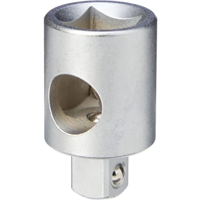 General description This reducer adapter allows you to connect tools and accessories with different drive sizes, enhancing the versatility of your ratchet or wrench. It is an essential accessory for professionals and DIY enthusiasts working in automotive, assembly, and maintenance tasks. Technical specifications Material: Chrome vanadium steel with satin finish Drive sizes: 1/2 inch Female to 3/8 inch Male Length: 40mm Design includes a ball support on the outer thread to securely hold the sleeve Compatibility and accessories Compatible with standard 1/2 inch and 3/8 inch drive tools Includes a metal clip for attachment to a rail or tool holder Installation Simply insert the adapter between your tool and the accessory or socket Ensure the ball support engages properly to secure the connection Usage Use to convert a 1/2 inch drive to a 3/8 inch drive or vice versa Suitable for use with ratchets, sockets, and other compatible hand tools Other information