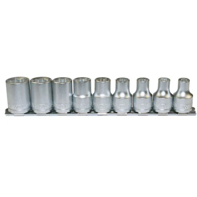 General description This Teng Tools M1210 Socket Clip Rail Set includes 9 External TORX 1/2in Drive sockets, crafted from chrome vanadium steel for enhanced strength and durability. The sockets feature an attractive satin finish and are organized on a clip rail, making them ideal for wall mounting or toolbox storage. The set includes the following External TORX socket sizes: E10, E11, E12, E14, E16, E18, E20, E22, and E24. Technical specifications Number of pieces: 9 Socket sizes: E10, E11, E12, E14, E16, E18, E20, E22, E24 Finish: Matte Clip rail length: 230mm (9in) Compatibility and accessories Compatible with external TORX screws Includes a storage rail with clips for organization Installation Insert the socket onto a compatible ratchet or drive tool Ensure the socket is securely attached before use Usage Use with appropriate ratchet or drive tool for tightening or loosening TORX screws Suitable for automotive, machinery, and home improvement applications