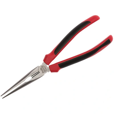 General description These Teng professional quality 200mm (8in) Long Nose Pliers are designed for gripping, bending, and cutting wires and cables. They feature serrated pipe jaw grips and a high leverage cutting action, making them ideal for electrical, DIY, and home improvement tasks. Technical specifications Material: High-carbon steel Jaw length: 200mm Cutting angle: 80° Handle: Dual-material TPR grips for comfort Cutting capacity: Up to 1.5mm piano wire, 2.8mm medium hardness wire, and 1.8mm hard cables Standards: DIN 5745 Installation No installation required; ready to use out of the box. Usage Designed for gripping, bending, and cutting wires and cables. Ideal for electrical, DIY, and home improvement tasks. Other information