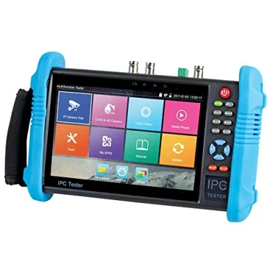 All-in-One Camera Tester: Supports AHD, HD-TVI, HD-CVI, IP & analogue cameras, making it perfect for CCTV installers, security professionals, and IP network testing. High-Definition 7" Touchscreen: 1280x800 resolution with H.264/H.265 4K video display, HDMI output up to 1080P, and simultaneous IP & CVBS testing. Professional Camera Control: Onvif and analogue PTZ support, 4x zoom, screenshot, recording, and playback, plus rapid auto-login to IP cameras for immediate monitoring. Network & Cable Testing: RJ45 TDR testing, UTP cable pair status, length, and attenuation checks, FTP server support, and enhanced colour bar generator for installation verification. Versatile Connectivity: BNC input/output, PoE support, HDMI output, mobile and PC viewing, static IP/DHCP, CVBS loop test, RS485 communication address scan, and built-in LED torch for field work. Durable & Portable: Lightweight at 1kg with compact dimensions (240x158x44mm), built for professional installation environments.