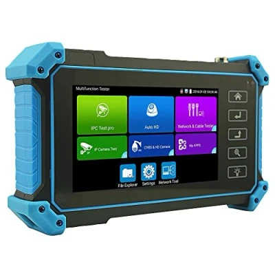 All-in-One IP & Analogue Tester: Supports analogue, HD-TVI, HD-CVI, AHD, and ONVIF IP cameras, perfect for installers and maintenance professionals. High-Resolution 5" Display: 1920x1080 resolution ensures clear live video feed for accurate testing. Versatile Power Output: Provides 12V DC, 3A and 48V PoE for powering cameras during setup or diagnostics. Comprehensive Cable Testing: RJ45 TDR test, UTP cable fault detection, and crystal head diagnostics help identify wiring issues quickly. HDMI & VGA Input: Supports 4K @30fps HDMI and 1920x1200 @60fps VGA, allowing flexible camera compatibility. Portable & Reliable: Built-in 7.4V, 3,350mAh Li-ion battery for field use, lightweight at 320g. Automatic HD Recognition: Auto-detects HD coaxial camera type and resolution for rapid setup.