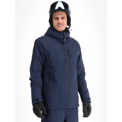 Tenson Niseko insulated ski jacket for men. A midweight, insulated shell designed for on-piste and all-mountain days. The jacket combines a 10 000 mmH2O waterproof rating with 10 000 g/m²/24h breathability to keep moisture out while allowing perspiration to escape. Constructed in a three-layer MPC Extreme fabric, the Niseko offers waterproof, windproof and breathable performance. All seams are fully taped to maintain weather protection, and the shell uses a PFC free treatment. The outer is made with recycled polyester to reduce environmental impact without compromising durability. Warmth comes from AirPush Insulation, which provides thermal protection while remaining lightweight and compressible. The collar is high with a fleece lining and a chin protector at the zipper for comfort against the face. The hood is fixed and can be adjusted for a secure fit. Pre-shaped sleeves and stretch, adjustable cuffs improve mobility and seal out snow, while an adjustable hem refines the fit at the waist. A fixed snow gaiter prevents snow ingress during skiing. Practical details include a vertical breast pocket and a dedicated ski pass pocket on the sleeve for easy access, together with inner pockets for essentials and dedicated lining pockets for organisation. Zippers are positioned for convenience and to reduce bulk under a backpack or lift harness. The Niseko insulated ski jacket suits resort skiing and varied winter conditions. It accommodates mid layers for colder days and offers articulated movement for active skiers. With its combination of waterproofing, breathability and responsible materials, the jacket balances performance and everyday usability on the mountain.
