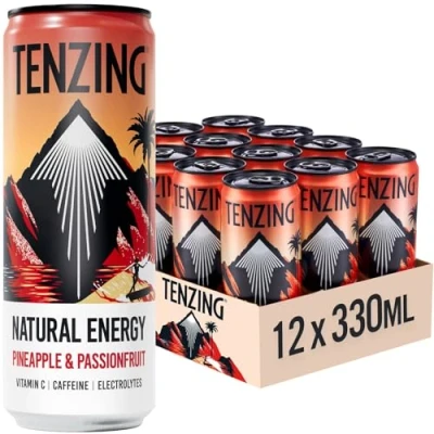 PURELY FROM PLANTS - TENZING Natural Energy Pineapple & Passionfruit is packed with our triple hit of natural caffeine, electrolytes and vitamin C, now with a tropical taste. TENZING Natural Energy is a plant-based sparkling drink with the triple hit of natural caffeine, electrolytes and vitamin C from Acerola cherries, inspired by the energising brews of Himalayan Sherpas. HEALTHY ALTERNATIVE - Our plant-based drink is a delicious, healthy alternative to traditional energy drinks. We never use anything artificial, our energy comes purely from plants VEGAN & GLUTEN-FREE - inspired by the naturally energising brew of the Sherpa's, TENZING's ingredients are purely sourced from nature and contain no animal bi-products or traces of gluten. THE WORLD'S FIRST CARBON NEGATIVE ENERGY DRINK - we are a carbon negative business, which means we offset more carbon dioxide from the atmosphere than we emit