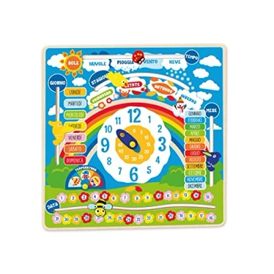 Enjoy discovering seasons, weather and weather Large clock in the center to learn how to read the time Calendar with months, days of the month and week Weather with indication of weather and seasons, Manufacturer: Teorema