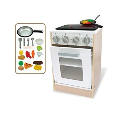 ✅ COMPONENTS: Openable oven with 4 knobs to adjust the cooking mode and temperature and a battery plate with kitchen accessories. ✅ MATERIAL: Made of wood with all rounded edges to prevent baby or girl from getting hurt while playing. ✅ PLATE: The plate is equipped with 2 burners, battery operated and there are 2 buttons for switching on and off. Light and sound effects will start during use. ✅ OVEN: The oven is openable, inside you can place the foods you want to cook to create your own dishes. With 4 knobs to adjust cooking mode and temperature. ✅ MANY ACCESSORIES: Includes kitchen utensils and food. Each component is similar to real to help the child or girl playing to use her creativity to create new recipes., Manufacturer: Teorema Srl
