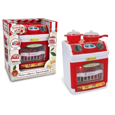 KITCHEN AND THEN WASH, FULL GAME: This is not just a stove, but a 2 in 1 set! Children can first "cook" delicious dishes on the two-burner hob and then, just like the big ones, load pots and dishes into the dishwasher below to "wash" them. COOKING WITH REAL LIGHTS AND SOUNDS: Become a real chef! Turn the knobs to "light" the fires - a red light will light up and you will hear realistic sounds, for an incredibly immersive and immersive gaming experience. WORKING DISHWASHER: After cooking, it tidy up! Open the door, insert the basket with the dishes (included) and start the washing cycle. It will activate lights and sounds that simulate a real dishwasher in operation, teaching the value of cleaning. COMPLETE KIT (BATTERIES INCLUDED): The fun starts right away! Includes a pot, a pan with lid and a dishwasher basket. Batteries are already included, so the game is ready to use right out of the box. DEVELOP FANTASY AND RESPONSIBILITY: This imitation game is perfect for developing creativity in the kitchen and teaching the importance of tidying up. Handling knobs and accessories improves fine motor skills, while the full game cycle stimulates a sense of responsibility., Manufacturer: Teorema Giocattoli