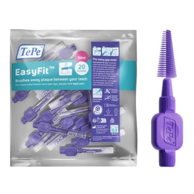 Clean between teeth with TePe EasyFit: The easiest way to get a healthy smile is to clean between your teeth, in the space where the gum line meets the teeth. Adding this to your oral care routine will help you get fresher breath and healthier teeth. Efficient plaque removal: Brush away the hidden plaque and debris between your teeth with an TePe EasyFit. A toothbrush only cleans 60% of your tooth surfaces, but with TePe EasyFit you can clean up to 100%. Efficiently and easily everyday. Conical shape: TePe EasyFit has a conical shape that makes the brush fit many different sizes between teeth. From more narrow to large gaps, TePe EasyFit suits many needs and cleans between your teeth efficiently. Available in two easy-to-choose sizes, S/M and M/L. Easy-to-use: The ergonomic, user-friendly handle of TePe EasyFit ensures the brush smoothly cleans between your teeth. Its soft brush tip makes it easy to insert and gentle to use for daily cleaning. Interdental cleaning: Say goodbye to hidden plaque - and hello to a fresher, healthier smile. Add TePe EasyFit to your oral care routine today and start cleaning between your teeth with confidence.