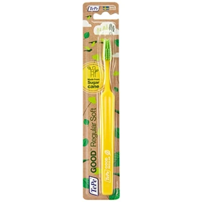 The GOOD Regular line by TePe consists of reliable, environmentally friendly toothbrushes with a comfortable design for adults Soft bristles provide a deeper clean between teeth and along the gum line, the tapered brush head allows you to access wisdom teeth or second molars Round ended filaments provide great access while still being gentle to the teeth, so you can brush comfortably and have a fresher feeling mouth Practical design with an ergonomic handle for a comfortable and secure grip to ensure effective cleaning, small design helps avoid triggering the gag reflex Items delivered: 1 x TePe GOOD Regular Toothbrush