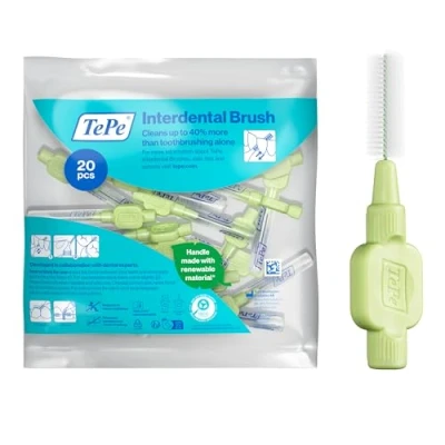 Interdental cleaning: TePe Interdental Brush Extra Soft is a plaque remover that allows you to safely clean between your teeth. It is also a great oral care tool for cleaning implants, crowns and bridges. Suitable for small gaps. Dental plaque removal tool: The Interdental Brush Extra Soft from TePe helps you remove plaque and clean the remaining 40% of your teeth that a toothbrush doesn't reach. An efficient and easy way to remove plaque between teeth. For a fresher breath: It's important to have a good oral hygiene. Use daily for healthier teeth and gum and for a fresher breath. Use together with a toothbrush in your daily oral care routine. Renewable materials: The materials of the TePe Interdental Brush are sourced from renewable materials, with a great focus on product quality, efficiency and design. TePe Interdental Brushes are made in Sweden. Ergonomically shaped handle: The user-friendly handle offers a stable grip which enables cleaning with controlled movements. The interdental brushes are developed in collaboration with dental experts to ensure highest quality in every detail.