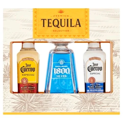 Tequila Selection Trio Gift Set. 3 x 5cl bottles, including 1800 Silver and Jose Cuervo Especial. Premium Pack for Christmas Birthdays