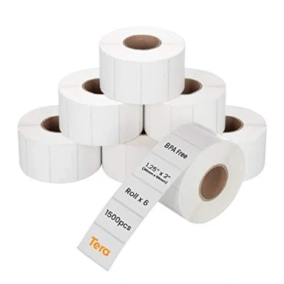 Tera 1.25"x2" (1500 Labels/Roll, 6Rolls) Thermal Shipping Labels BPA Free Smudge Clear Printing for Various Printers Permanent Adhesive Address with Fragile Sign Stickers