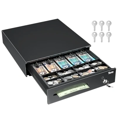 5 BILL 8 REMOVABLE COIN TRAY: Designed for efficient cash management, the Tera 4042G cash drawer features a removable coin tray for easy handling and customization. It provides organized storage for 5 bills and 8 coins, making it ideal for various business needs. Sized 42 x 40.5 x 10.4 cm , it fits seamlessly into your workspace while offering ample capacity. Includes 1 media slot for quick and secure storage of checks, receipts, or other documents, this cash drawer is both practical and versatile. COMES WITH 6 KEYS FOR FLEXIBLE USE: The package includes 6 keys, offering versatility and convenience. The extra keys can serve as backups, ensuring you never get locked out. Assign different keys to specific employees for better team management and increased accountability. Perfect for businesses that value security and organized access control. STURDY BUILD WITH EXCEPTIONAL DURABILITY: Crafted with a full-metal casing and a high-temperature baked enamel finish, this cash drawer delivers outstanding strength and resistance to wear. Built for high-performance use, the cash tray clip is designed to withstand up to 1,000,000 cycles, ensuring reliable operation for years to come. ENHANCED SECURITY WITH 3-POSITION LOCK: Features a 3-position key lock for versatile use: 1-Automatic open via printer or driver, 2-Manual open with key, and 3-Locked position for added security. This smart locking mechanism ensures controlled access and keeps your cash safe during operation, making it an ideal choice for businesses. SEAMLESS INTEGRATION AND VERSATILE USE: Easily connect the cash drawer to a receipt printer via the included RJ12 cable, then link to your POS system for automatic operation. Compatible with most major printer brands, it’s ideal for both home and commercial use, such as retail stores and supermarkets. Designed for convenience, it can be placed on a countertop or mounted under the counter. Package contents: 1 Cash Drawer, 1 RJ12 Cable, and 1 User Manual.