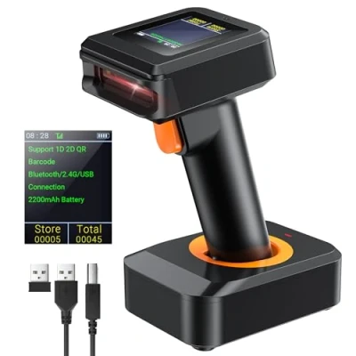【Package Includes】 Tera Barcode Scanner x1, USB Cable x1, Charger/Stand/Receiver 3-in-1 Cradle x1, User Manual x1 【Original Design】Exclusive led display design can show scanning status; the connection mode; the battery level; current time; barcode information; total stored barcodes. Plus it has been spperance Patent Design Certificated: Patent Number 90078251950003. 【3-in-1 Base&3 Transfer Method】Equipped with charger, stand and receiver. And has three connection modes: Bluetooth, wireless 2.4G and wired connection. It can adapt to various working environments. No any worries. 【Supported Digital and Printed 1D 2D Code】Symbologies: 1D: Codabar, Code 11, Code93, MSI, Code 128, UCC/EAN-128, Code 39, EAN-8, EAN-13, UPC-A, ISBN, Industrial 25, Interleaved 25, Standard25, Matrix 2D: QR, DataMatrix, PDF417, Aztec, Hanxin, Micro PDF417. It can read barcode displayed on computer monitor. 【Large Capacity Battery】The 2200mAh large-capacity battery can extend the standby time to 15 days. No need to worry about running out of battery. 【Supports multiple languages】Including English, Spanish, German, French, Italian, Japanese, etc.