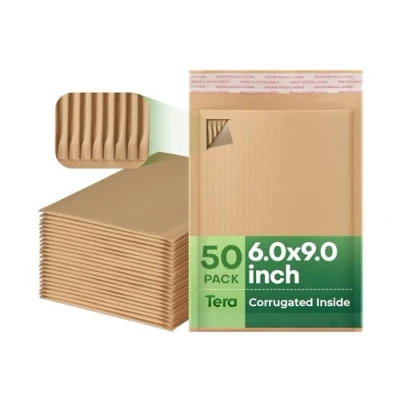 Tera Rigid Mailers Kraft Envelopes: 50 Pack 6 x 9 Inch Recyclable Shipping Envelopes 80gsm Thickened Self Sealing Inside Corrugated for Document CD Photos Postcard Small Business