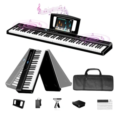 【88 Keys Weighted Dynamic Keyboard】This keyboard piano offers a realistic, traditional playing feel that responds to the intensity of the key press and generates different tonal nuances that sound authentic like a traditional piano. The piano keyboard can be set to two modes – light and heavy touch. The light touch is suitable for beginners, while the heavy touch is ideal for professional players.