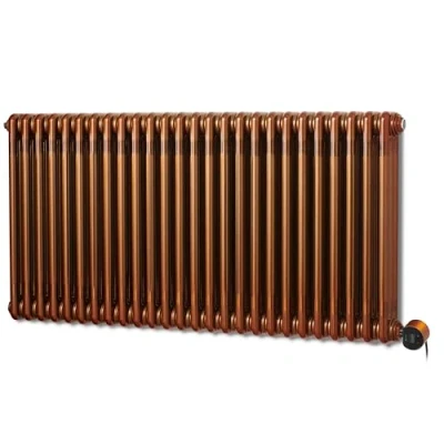 Terma traditional 3 column deep, oil filled electric radiator supplied with the Terma VEO element controller is the very latest wifi technology from Terma, controlled via the free Terma SMART app (ios/android). The Colorado with VEO wifi controller offers between 1.0 kw and 1.5 kw of heat output (dependant on size chosen) so the perfect electric radiators for large open spaces. Offers 5 room temperature settings (15 to 28 °C), a Drying function and a full 7-day timer. Coupled with the VTS wall mounted temperature sensor and VOS open window sensor (sold separately) gives very precise measurement of temperature in the entire room. The lacquer version is produced by adding a copper tinted lacquer over the top of the steel so all of the braising marks of the welding process show through the lacquer creating a very modern industrial look aged with the subtle copper tint. The smart split probe is pre fitted inside the raditaor on the right side (can be moved to left side). The VEO controller simply pushes on and can be rotated to view. The cable length is 1.5 metres. The clamshell casing on each element is in a matching or complimentary colour to the radiator. The controller comes pre fitted with a UK 3 pin plug for ease of installation next to an existing socket. Features Geo location functionality so when you leave home the devices will reduce temp by a nominal amount (approx 3 to 4 degrees) to save energy and when you arrive home it will revert back to comfort mode. Straight cable, fitted with a UK 3 pin plug. IPx5 (safe for use in bathroom). Class 1. UKCA Approved. Guarantee: 2 Years.