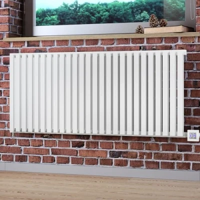 Terma oil filled electric radiator supplied with the Terma KTX 4 Blue (bluetooth) heating element - smartphone controlled, fully thermostatic element and a round clock face style head in matching silver. Full operational control on smartphone/tablet via Bluetooth (up to 10 metre range depending on your walls), with a choice of internal temp (30°c to 60°c) or ambient room temp (15°c to 30°c) regulation. Once programmed the element will remember settings when phone is not in Bluetooth range. 7 day Timer functionality. Also includes 2hr drying function whereby radiator will turn off automatically when time has elapsed. The Sea Salt white colour from Terma has a matt, rough texture. This type of colour/finish is unique for electric radiators. Terma offers a 150x50mm colour chip of this finish should you wish to see the colour prior to purchase. The element probe is pre fitted inside the radiator and the square control head will be supplied separately and simply pushes onto the radiator. The square head can then be rotated to the required viewing angle. The Terma BlueLine app is free to download, available for IOS and ANDROID. Casing and cable on element will match the radiator colour (white/silver/black). IPx5 (safe for use in bathroom). Class 1. UKCA Approved. Trades can wire this in within minutes, no commissioning or lengthy instructions. Note: Nemo is a landscape (horizontal) radiator and cannot be installed vertically, as it will not function correctly vertically.