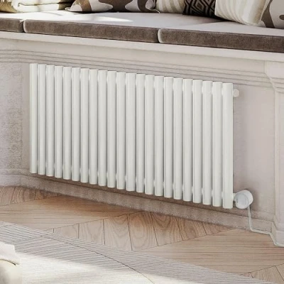 Terma oil filled electric radiator, with 40mm diamater bars, supplied with the Terma VEO element controller is the very latest wifi technology from Terma, controlled via the free Terma SMART app (ios/android). Requires a 2.4ghz wifi netwrk, which may need to be switched on by your internet service provider. The Rolo Room E with VEO wifi controller offers between 1.0 kw and 2.0 kw of heat output (dependant on size chosen) so the perfect electric radiators for large open spaces. Offers 5 room temperature settings (15 to 28 °C), a Drying function and a full 7-day timer. Coupled with the VTS wall mounted temperature sensor and VOS open window sensor (sold separately) gives very precise measurement of temperature in the entire room. RAL 9016 has a silk, smooth texture. Terma offers a 150x50mm colour chip of this finish should you wish to see the colour prior to purchase. The smart split probe is pre fitted inside the raditaor on the right side (cannot be moved to left side). The VEO controller simply pushes on and can be rotated to view. The cable length is 1.5 metres. The clamshell casing on each element is in a matching or complimentary colour to the radiator. The controller comes pre fitted with a UK 3 pin plug for ease of installation next to an existing socket. Features Geo location functionality so when you leave home the devices will reduce temp by nominal amount (3 to 4 deg) to save energy & when you arrive home it will revert back again. Straight cable, fitted with a UK 3 pin plug. IPx5 (safe for use in bathroom). Class 1. UKCA Approved. Guarantee: 2 Years.