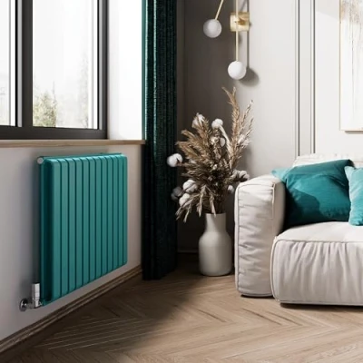 Warp Room is designed with double layered bars at the front and rear which offers very high heat outputs. The front layer of bars has a delicate curve at the top and bottom and the rear layer is completely flat suspended between the two uprights. Warp Room is very stylish in its construciton and is superior to a standard flat panel radiator with bars welded on - as this is made as one complete unit. Warp Room has a large surface area - so the colour stands out a lot more as a feature in the room, on this basis Terma offer the Warp Room models in a range of eye catching colours. Warp Room has underaside connections on the 1800mm high models and side connection on the 630mm high models. In both vases we recommend corner valves )as long as your pipes come through the wall) for the best overall look. The Teal RAL 5018 colour has a matt, smooth textured finish and is stand out feature colour to brighten up a room. Terma offers a 150x50mm colour chip of this finish should you wish to see the colour prior to purchase.