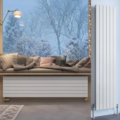 Forte is a flat bar range of designer radiators available in both single or double panel variants; each bar is 70mm wide with a small gap which creates a very seamless looking design set against the wall. The Forte single panel (V10) model is manufactured from a single layer of flat steel profiles mounted on round rear collectors, with a very shallow projection of just 73 mm including fixings. Note: Terma also offer a Forte double panel (V20) model which has a deeper projection of 93mm. This white (RAL 9016) colour has a silk, smooth texture. The Forte range have the unique feature that they can be installed either... vertically with the bars running up and down (valves connected on the sides)... or they can be installed horizontally with the bars running left to right (valves connected on the undersides). The same physical model you buy can be installed either way up giving maximum flexibility dependant on your space requirements. As you rotate rad it changes the side view of the brackets; bars running vertically the brackets are on show, but with the bars running horizontally the brackets are fully concealed. Forte is pre fitted with an internal diverter (baffle) which is an aid to ensure even heat distribution. If being installed with the bars running vertically this should be left in place. If this is installed with the bars running horizontally this need to be tapped out.