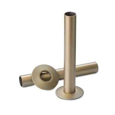 Pipe masking set - to cover the exit point for your valves from the wall and into the back of your radiator. Gives the perfect finish with a collars to sit around the pipes where they come out of the wall and pipes to sleeve your cooper pipes within. Match these with the CYLINDRICAL or TRADITIONAL valves ranges from Terma. Pipes are 130mm in Length, 18mm in diameter (16.5mm internal diameter) so will sleeve over 15, 10 or 8 mm diameter copper pipework. Collars are 44mm Diameter. Old English Brass in colour. Important Note: This listing is for the pipes collars only. The valves pictured are not included. We show these images so you can see how they will look once placed next to the valves. Look for the valves shown in the the image and these need to be beought separately.