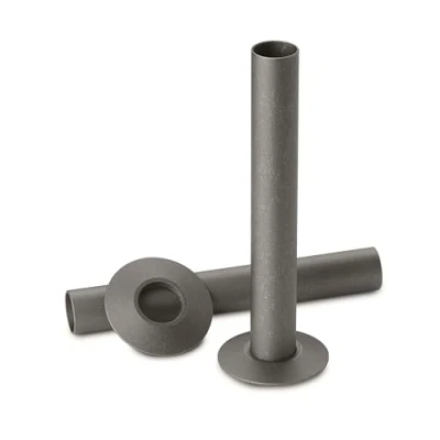 Pipe masking set - to cover the exit point for your valves from the wall and into the back of your radiator. Gives the perfect finish with a collars to sit around the pipes where they come out of the wall and pipes to sleeve your cooper pipes within. Match these with the CYLINDRICAL or TRADITIONAL valves ranges from Terma. Pipes are 130mm in Length, 18mm in diameter (16.5mm internal diameter) so will sleeve over 15, 10 or 8 mm diameter copper pipework. Collars are 44mm Diameter. Pewter in colour. Important Note: This listing is for the pipes collars only. The valves pictured are not included. We show these images so you can see how they will look once placed next to the valves. Look for the valves shown in the the image and these need to be beought separately.