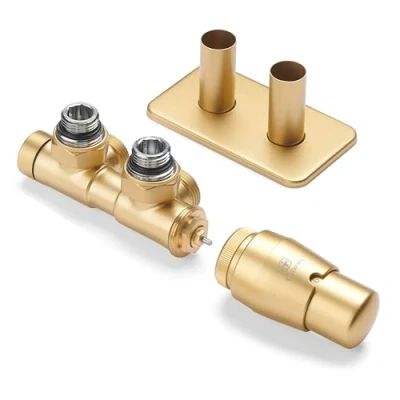 The Twins sets of valves come complete with 50mm connection valves and a 50mm pipe masking set - all produced in the matching colour to your radiator with the same 50mm connections. These valves are specially stocked to pair with any radiator with 50mm connections (i.e. Hex) manufactured in the same colour to achieve an overall matching finish head to toe. Angled orientation and right sided (with the TRV head on the right hand side of the product and the body of the valve on the left side). The Brass colour has a matt, smooth finish. Full contents list: 1x valve body (50mm pipe centres), 1x Coloured Plastic/Brass Thermostatic head, 2x Coloured Nut for multilayer pipe adapter, 2x Coloured Nut for copper pipe adapter, 2x Coloured 50mm Pipes, 1x Coloured Steel/Brass Wall Masking Cover with 2 Holes, 2x Brass Nipple, 2x Brass Clamping ring, 2x Brass Copper pipe adapter sealing kit Note: The Vario valves are not bi-directional - therefore you need to select the correct left or right orientation.
