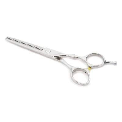 Maximum quality: Professional hairdressing scissors made of premium quality stainless steel alloy with high resistance to corrosion and wear Offset Design: Provide an ergonomic and relaxed finger and hand position Concave Blades: They reduce blade resistance to a minimum for less hand fatigue, they provide a very smooth cutting sensation and achieve an ideal cutting angle in any position 25-30 Percent Thinning V-Shaped teeth: 32 teeth that prevent hair from slipping, providing unique cutting precision Handmade: From their conception to their production, they rely on meticulous 100 Percent handmade work that seeks exquisiteness in every detail Measurement: 14 cm (5.5 inches)